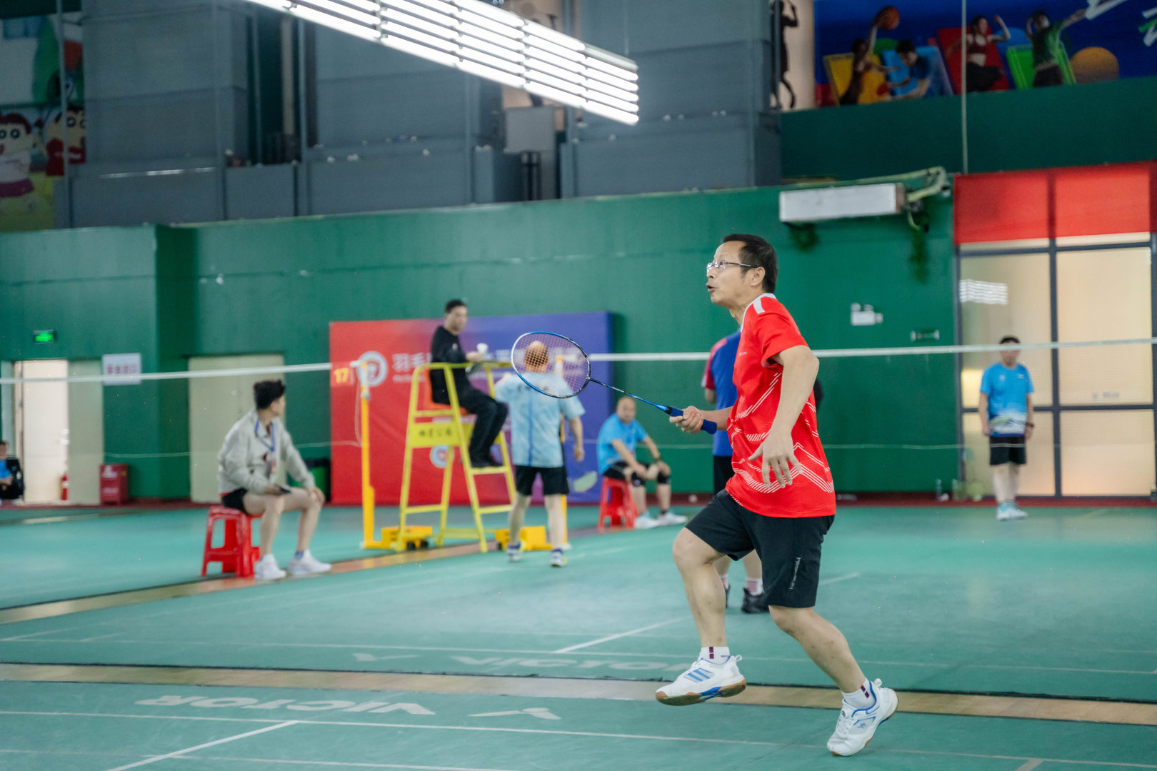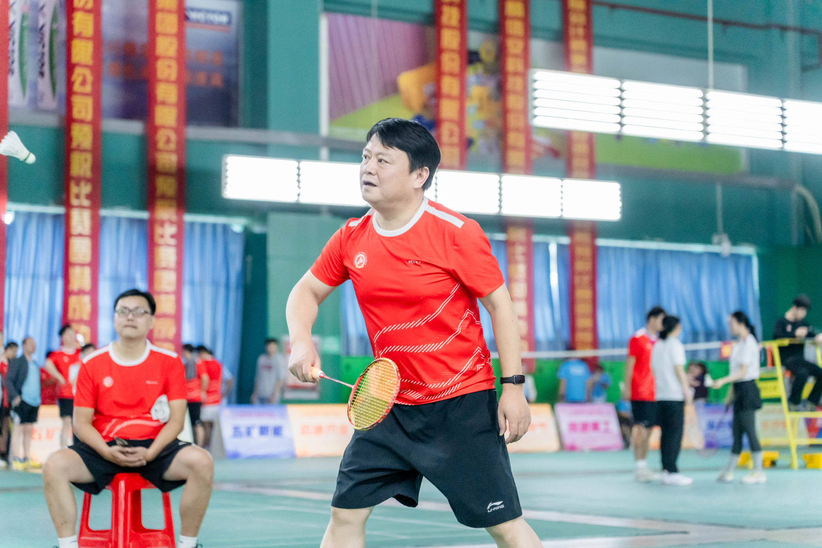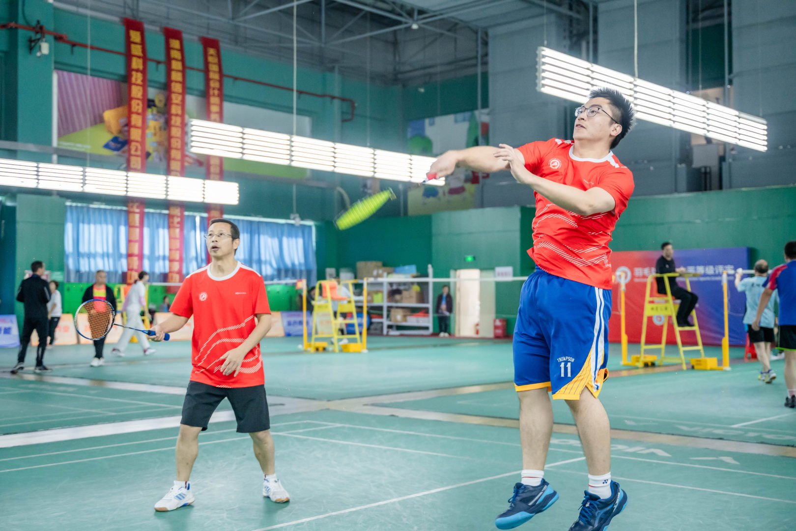 本次比赛分为高管双打、女子双打、男子双打、混合双打,赛场内,多场比赛高潮迭起,悬念丛生,不到最后一刻分不出胜负。赛场外,啦啦队员忘情的呐喊与鼓励,激励着健儿们奋勇争夺每一小分。让我们跟着下列图片一起来欣赏健儿们的英姿吧。